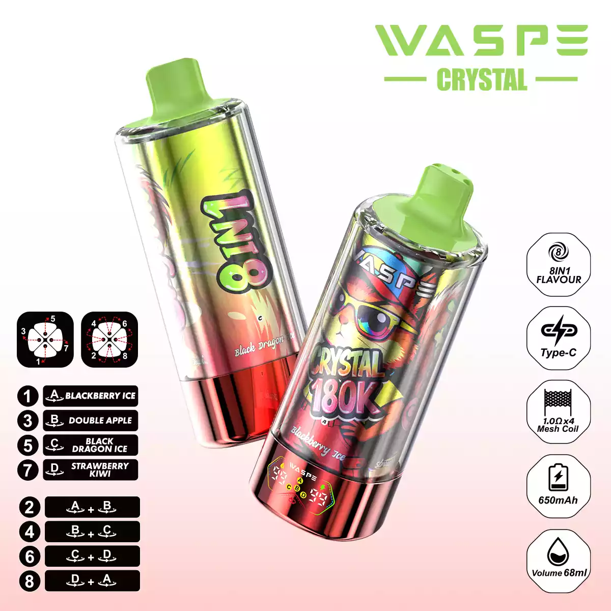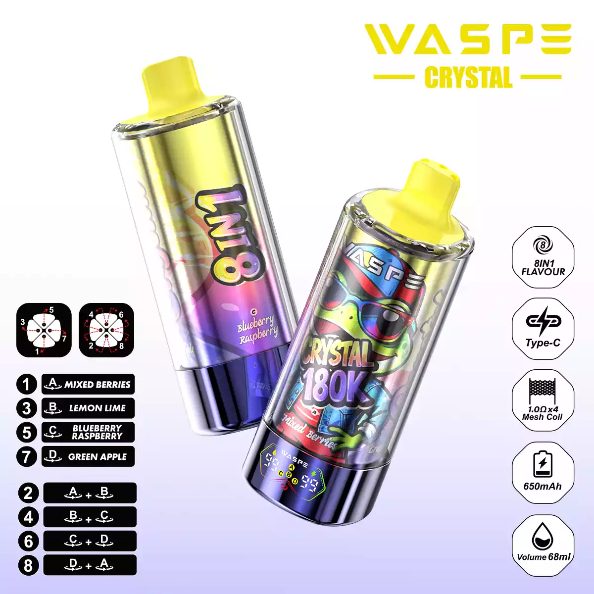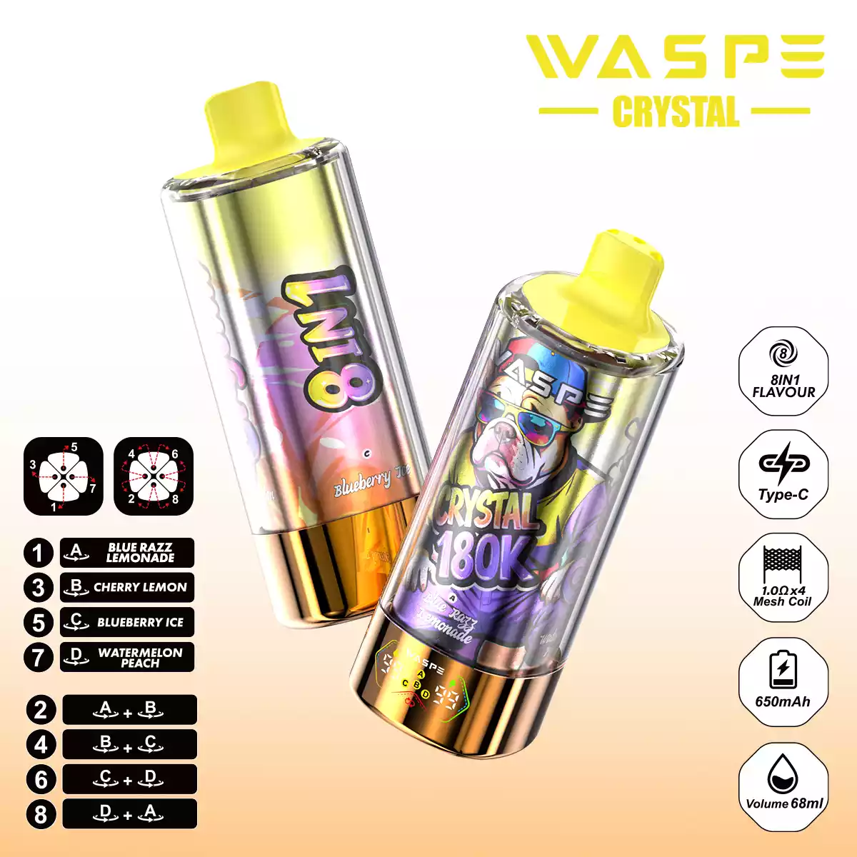 WASPE 8 in 1 Crystal 180.000 Züge: Der ultimative Geschmacks-Gigant!