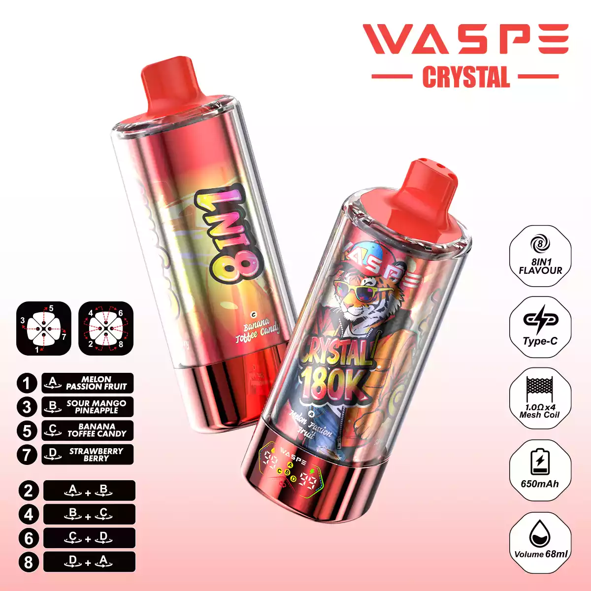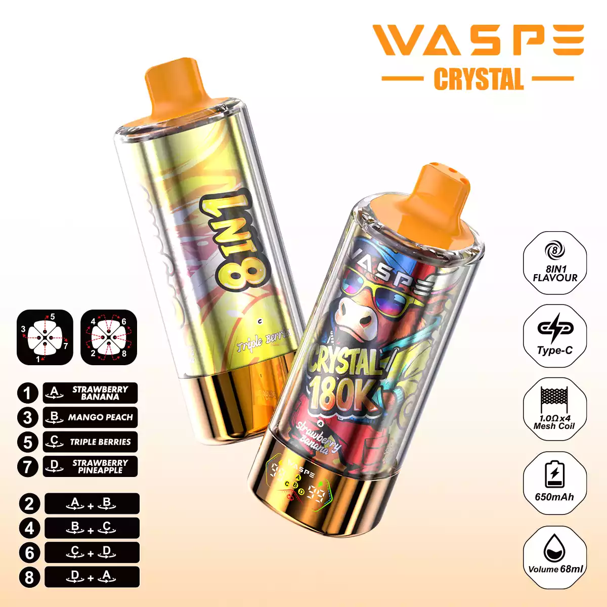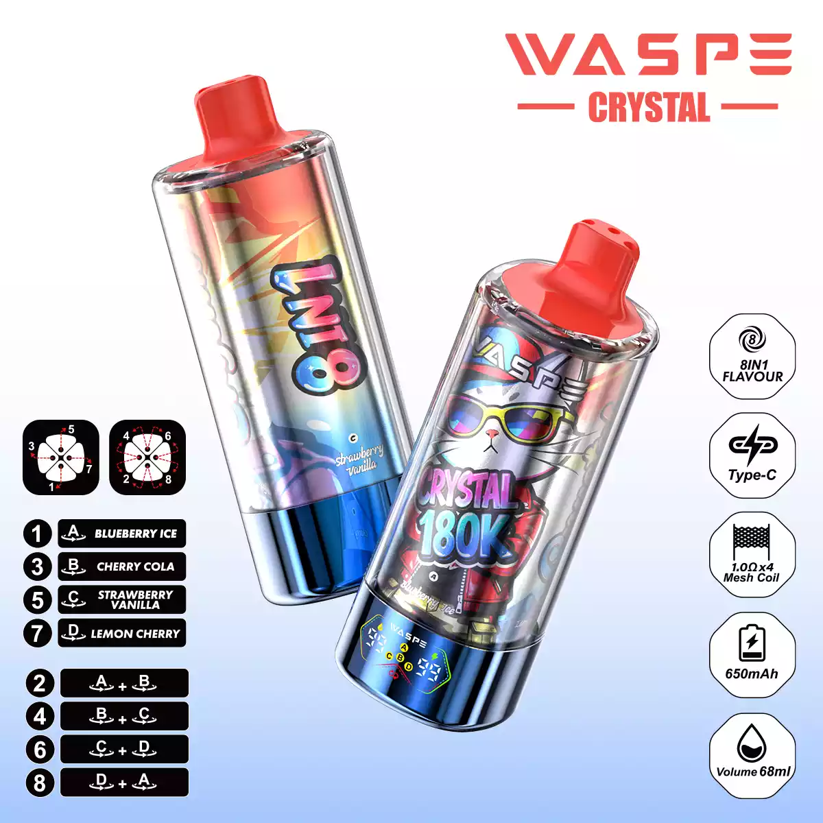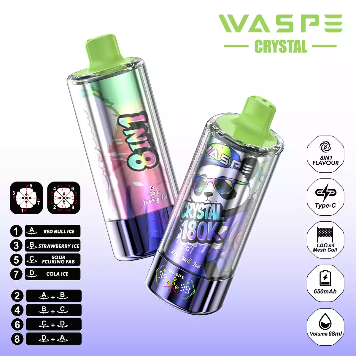 WASPE 8 in 1 Crystal 180.000 Züge: Der ultimative Geschmacks-Gigant!